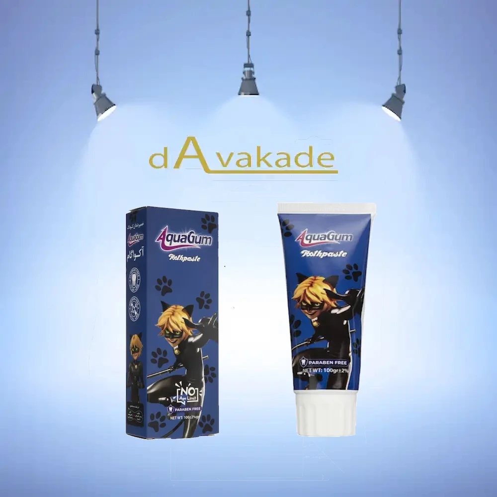 “description”: “خمیردندان کودک پسرانه آکواگام با طعم ملایم، طراحی کارتونی، فاقد فلوراید و ایمن، مناسب دندان‌های شیری و مناسب سنین ۲ تا ۸ سال.”,