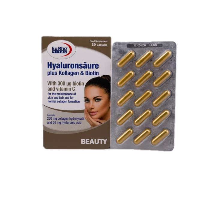 مکمل هیالورون سائور پلاس کلاژن و بیوتین یوروویتال EuRho Vital 30 عددی